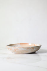 Glaze: Shino, Our modified take on the Japanese Shino glaze, with traditional crazing (small crackles in glaze). Finishes range from bright white with coppery crystals and bronze speckling to orange flashes with swirls of smoky carbon.