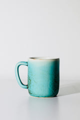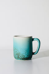 Glaze: Nocturne, White interior with a light blue-green body featuring dark & light green crystals. Each one is a unique expression of the interaction between glaze and kiln.