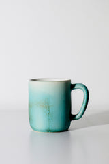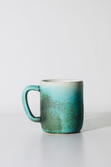 Glaze: Nocturne, White interior with a light blue-green body featuring dark & light green crystals. Each one is a unique expression of the interaction between glaze and kiln.