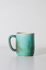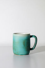 Glaze: Nocturne, White interior with a light blue-green body featuring dark & light green crystals. Each one is a unique expression of the interaction between glaze and kiln.