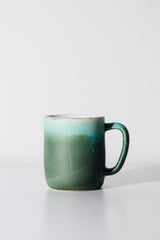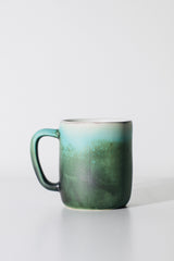 Glaze: Nocturne, White interior with a light blue-green body featuring dark & light green crystals. Each one is a unique expression of the interaction between glaze and kiln.