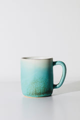 Glaze: Nocturne, White interior with a light blue-green body featuring dark & light green crystals. Each one is a unique expression of the interaction between glaze and kiln.