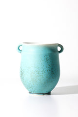 Glaze: Nocturne, White interior with a light blue-green body featuring dark & light green crystals. Each one is a unique expression of the interaction between glaze and kiln.