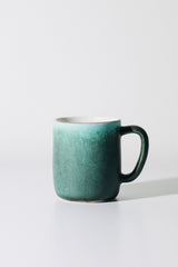 Glaze: Nocturne, White interior with a light blue-green body featuring dark & light green crystals. Each one is a unique expression of the interaction between glaze and kiln.