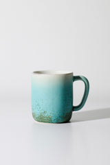 Glaze: Nocturne, White interior with a light blue-green body featuring dark & light green crystals. Each one is a unique expression of the interaction between glaze and kiln.