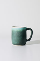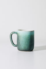 Glaze: Nocturne, White interior with a light blue-green body featuring dark & light green crystals. Each one is a unique expression of the interaction between glaze and kiln.