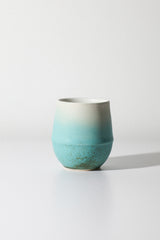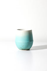 Glaze: Nocturne, White interior with a light blue-green body featuring dark & light green crystals. Each one is a unique expression of the interaction between glaze and kiln.