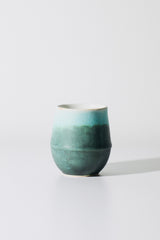 Glaze: Nocturne, White interior with a light blue-green body featuring dark & light green crystals. Each one is a unique expression of the interaction between glaze and kiln.