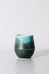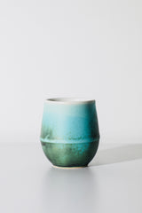 Glaze: Nocturne, White interior with a light blue-green body featuring dark & light green crystals. Each one is a unique expression of the interaction between glaze and kiln.