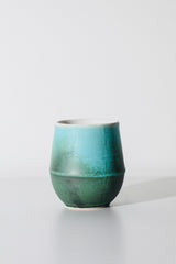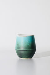 Glaze: Nocturne, White interior with a light blue-green body featuring dark & light green crystals. Each one is a unique expression of the interaction between glaze and kiln.