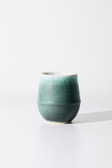 Glaze: Nocturne, White interior with a light blue-green body featuring dark & light green crystals. Each one is a unique expression of the interaction between glaze and kiln.