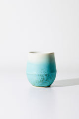 Glaze: Nocturne, White interior with a light blue-green body featuring dark & light green crystals. Each one is a unique expression of the interaction between glaze and kiln.